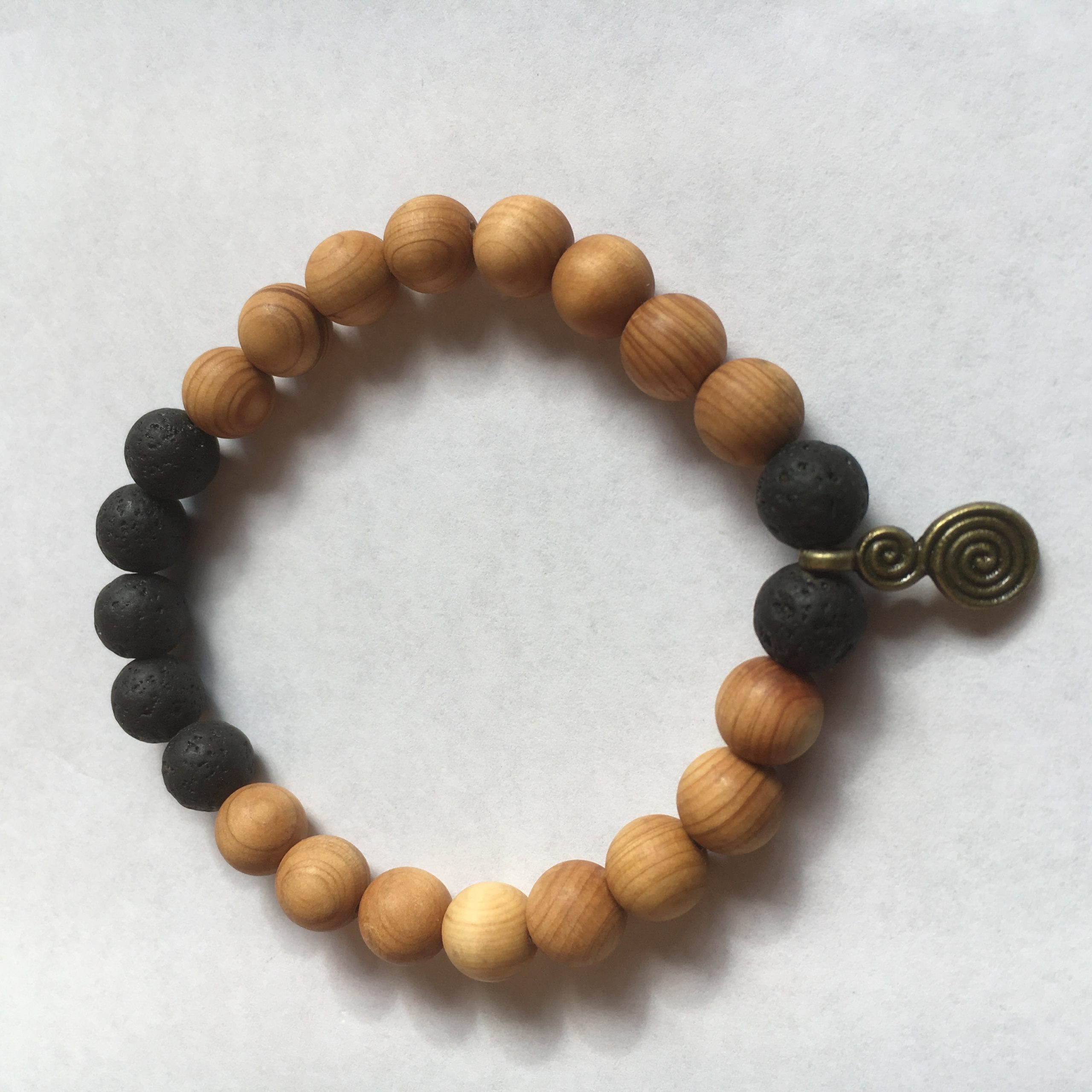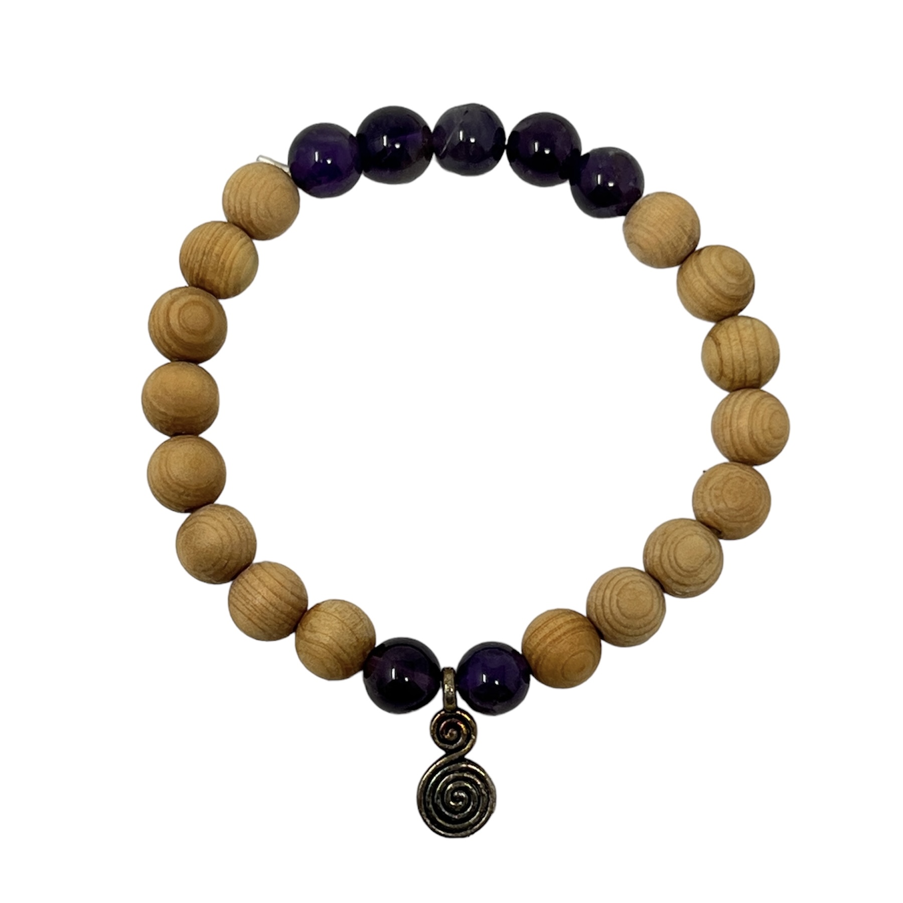 / Cedarwood with gemstone bracelets with charm 6mm