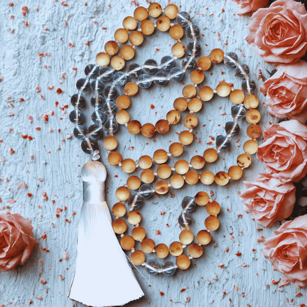 Cedarwood & Clear Quartz Cedarwood Gemstone Mala – 6mm