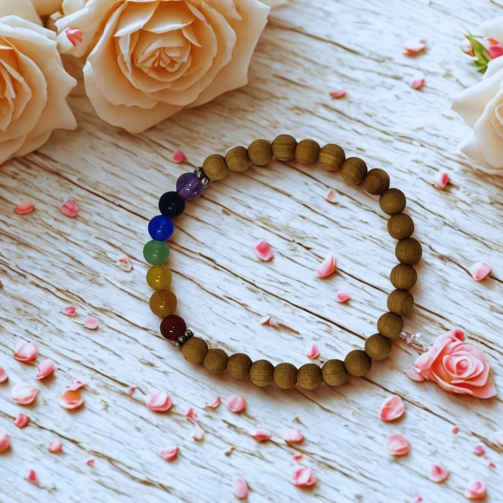Cedarwood & 7 Chakra Gemstone Mala – 8mm