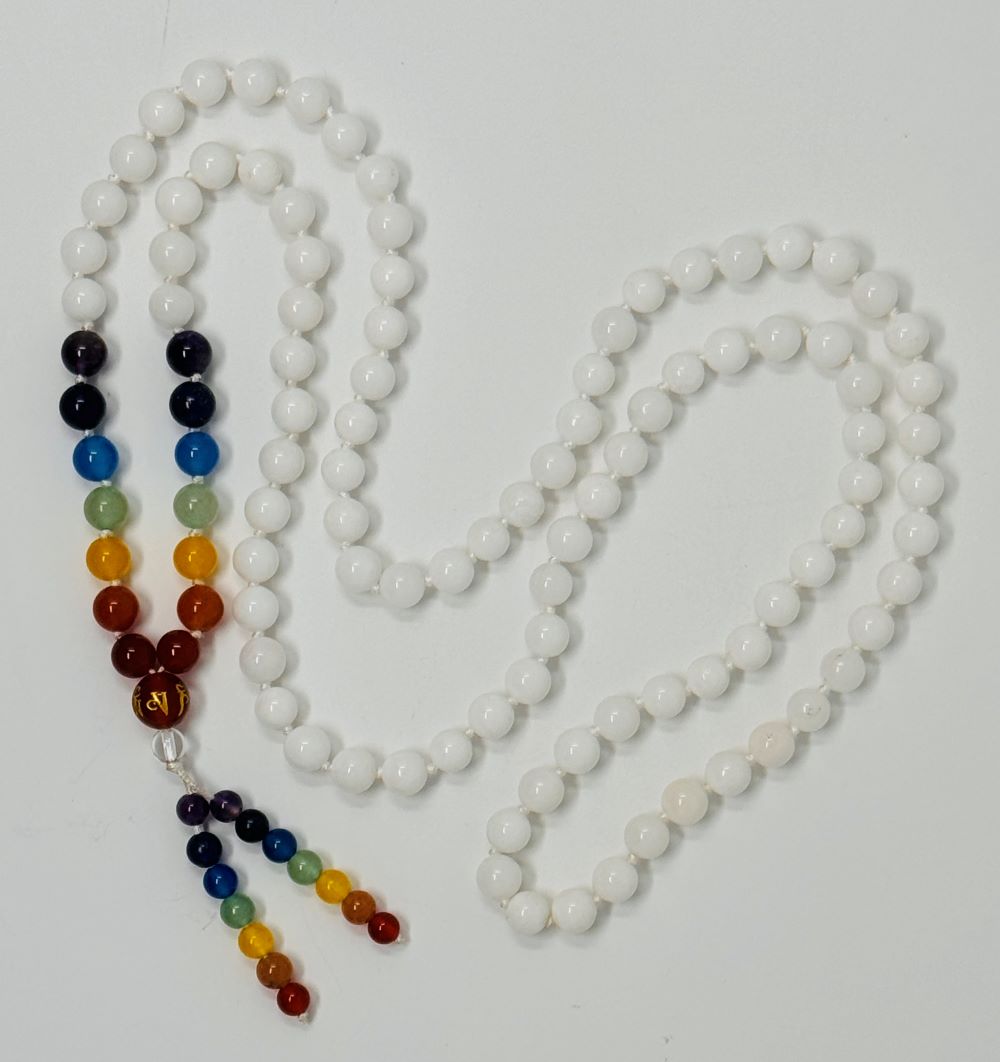 White Jade & 7 Chakra Beaded Tassel – 6mm