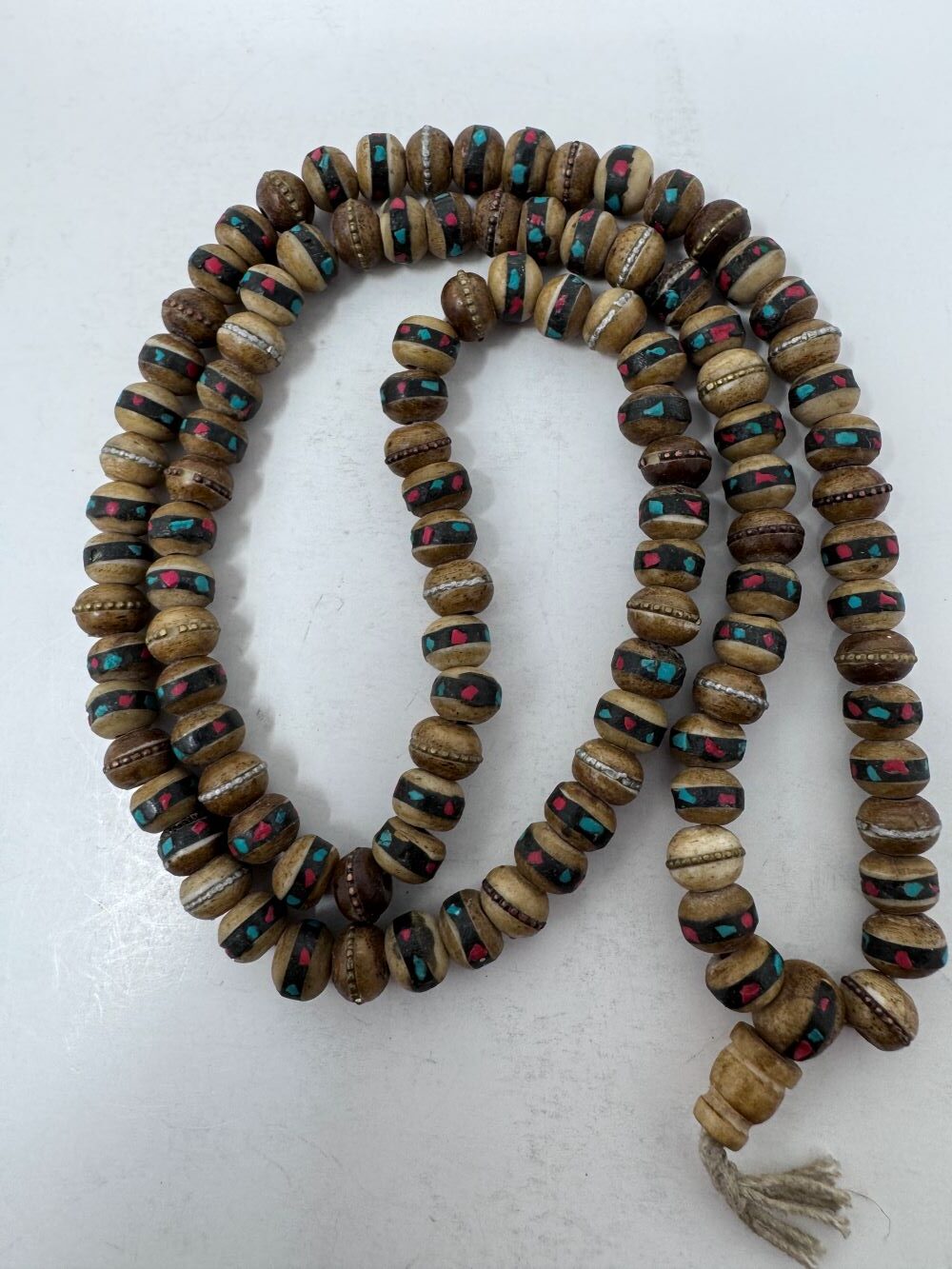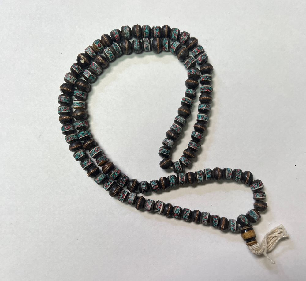 / Yak Bone Mala with Turquoise, Coral & Copper Inlay