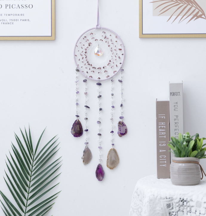 Gemstone Dreamcatchers Full Stones with Hanging Crystals – Amethyst