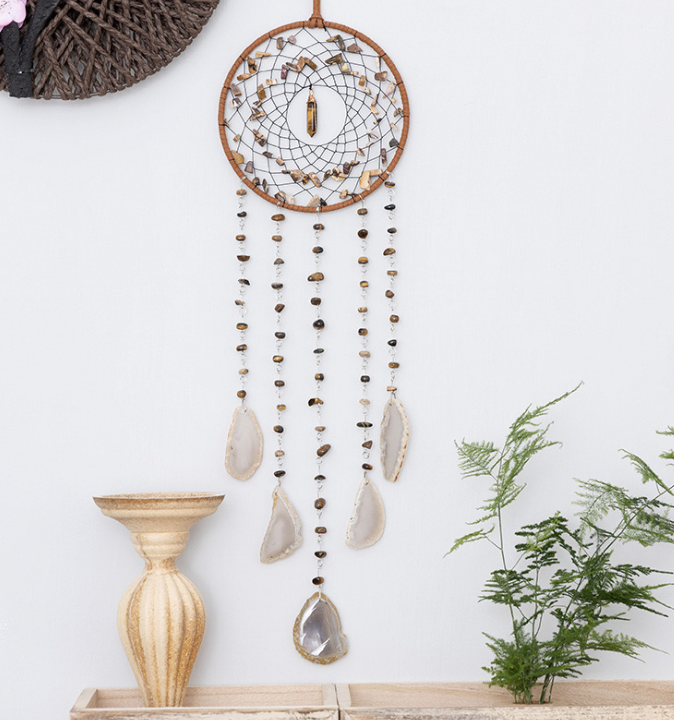 Gemstone Dreamcatchers Round Full Stones with Hanging Agate – Tiger Eye