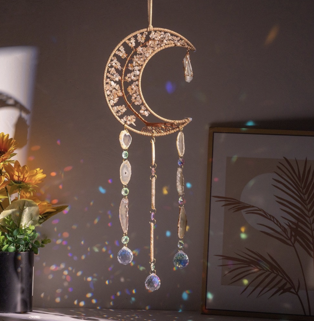 Gemstone Dreamcatchers Crescent Less Stones with Hanging Agate – Multistone