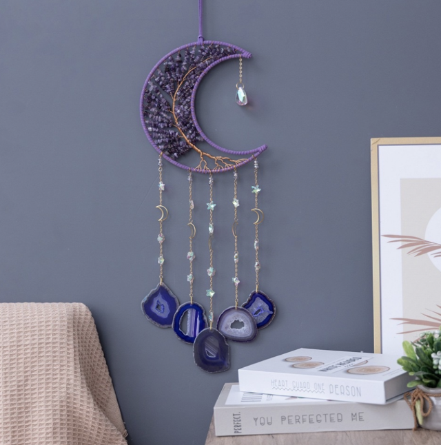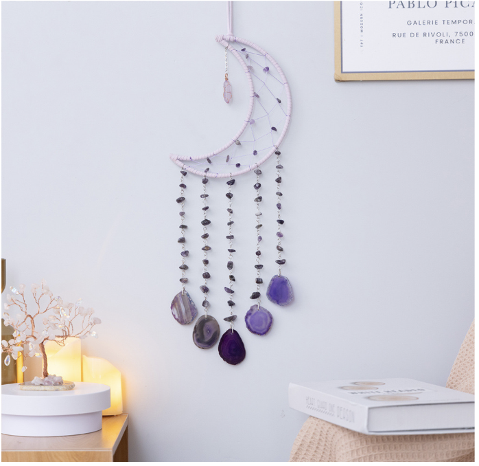 Gemstone Dreamcatchers Crescent Less Stones with Hanging Agate – Amethyst