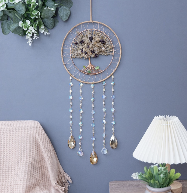 Gemstone Dreamcatchers Full Stones with Hanging Crystals – Smoky Quartz