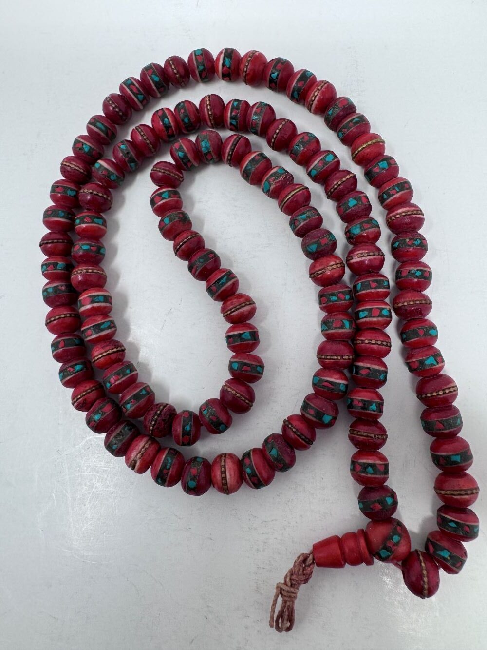 Red yak bone with turquoise, coral, & copper inlaid – 8mm