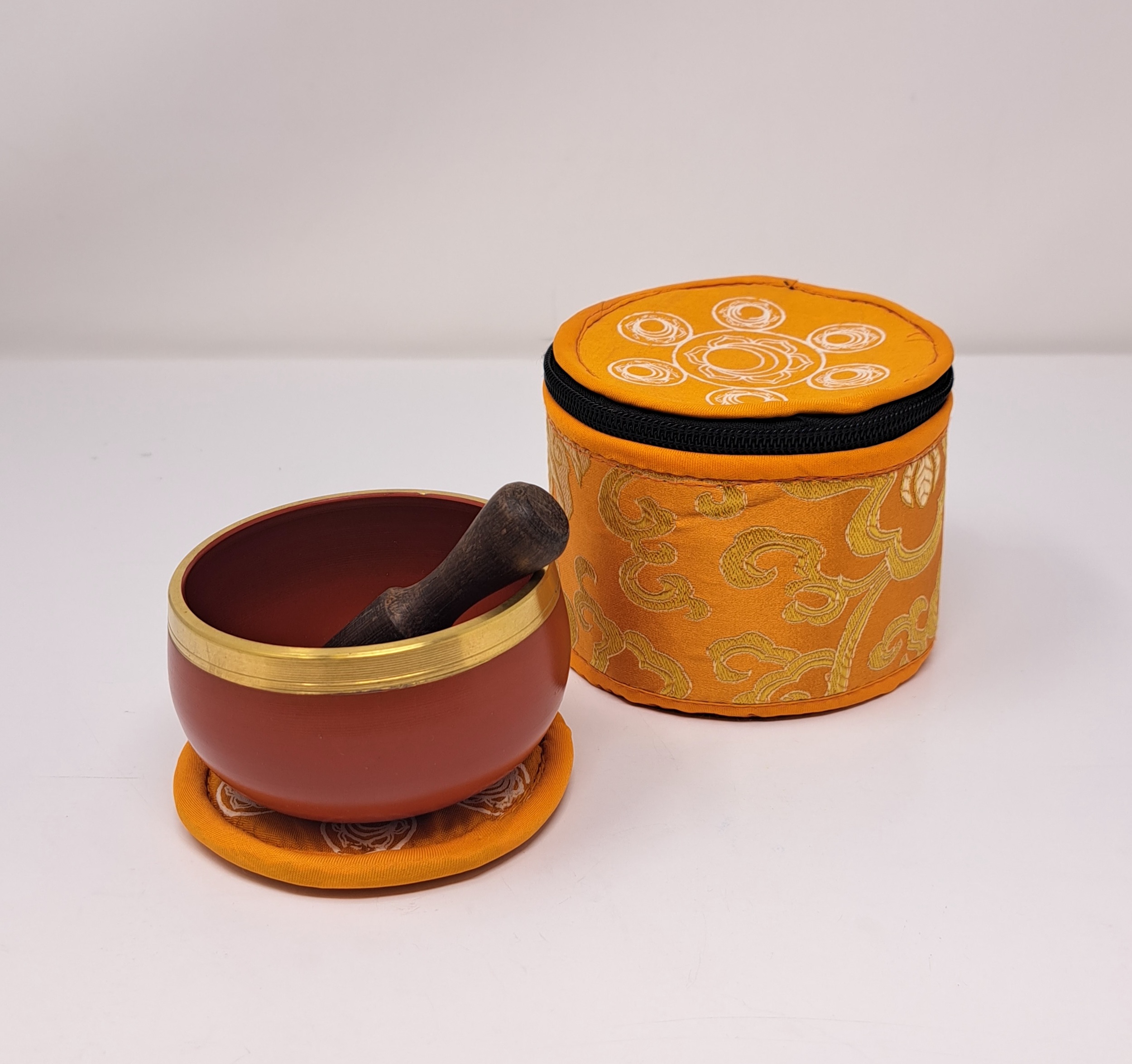 3″ Bowl Metal Chakra Round Brocade Box –Orange