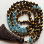 Tiger Eye & Aquamarine with Brown Tassel – 8mm