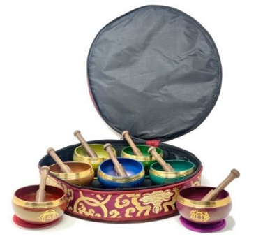 Metal Chakra Colored Bowls - Brocade Gift Box
