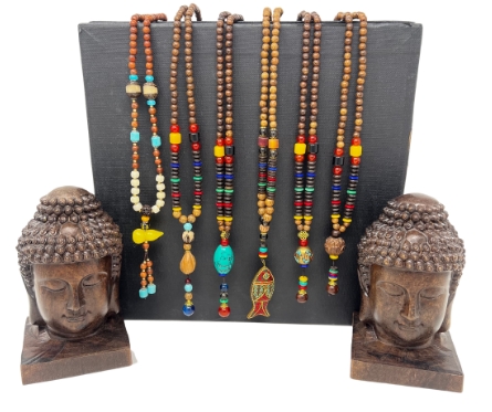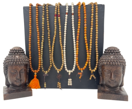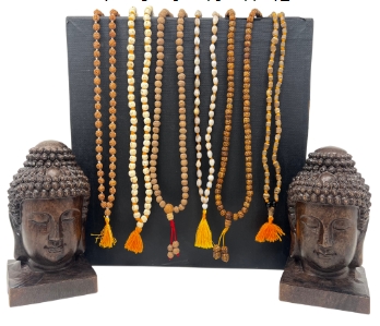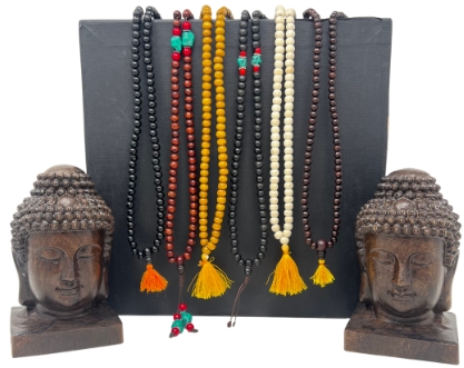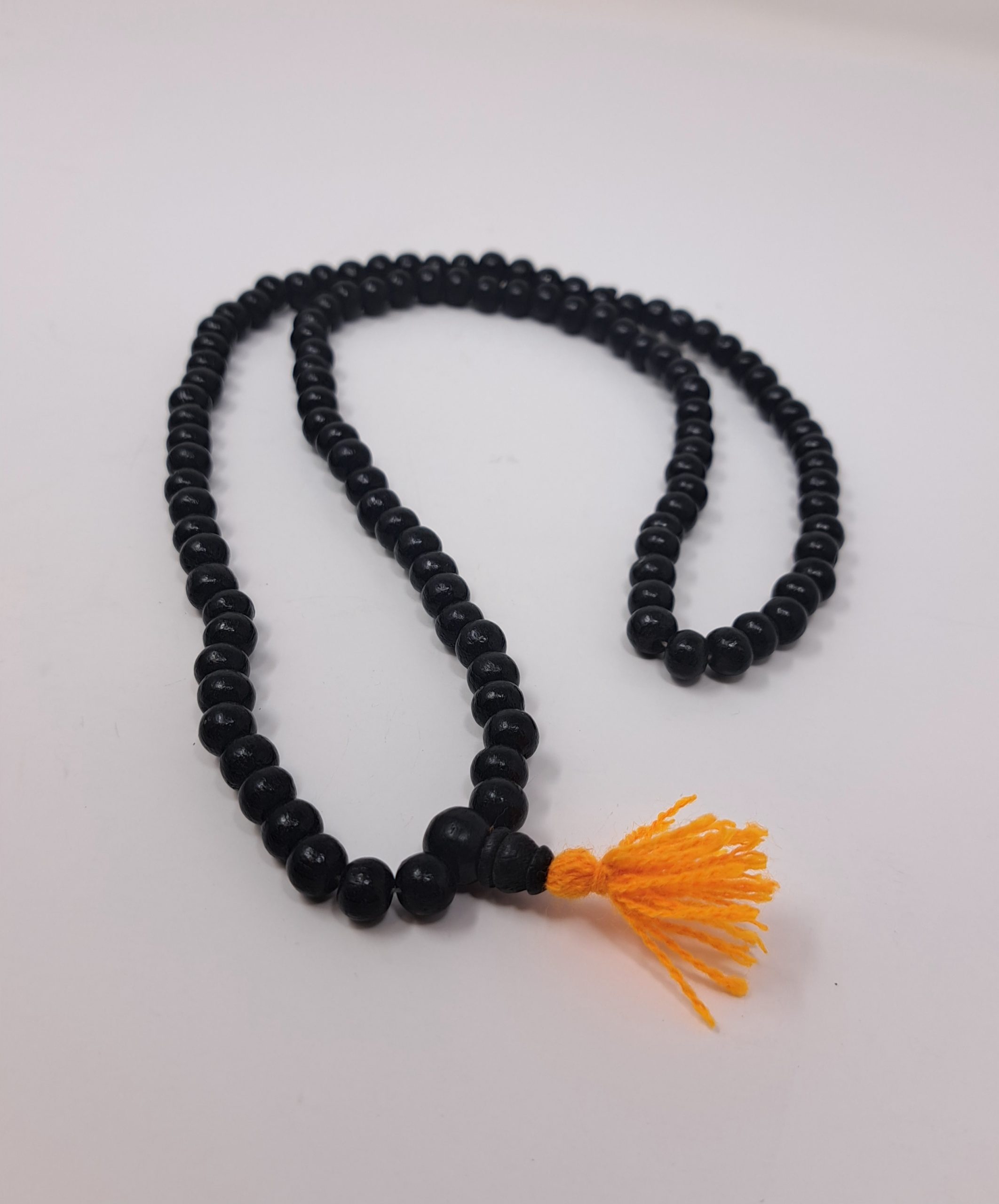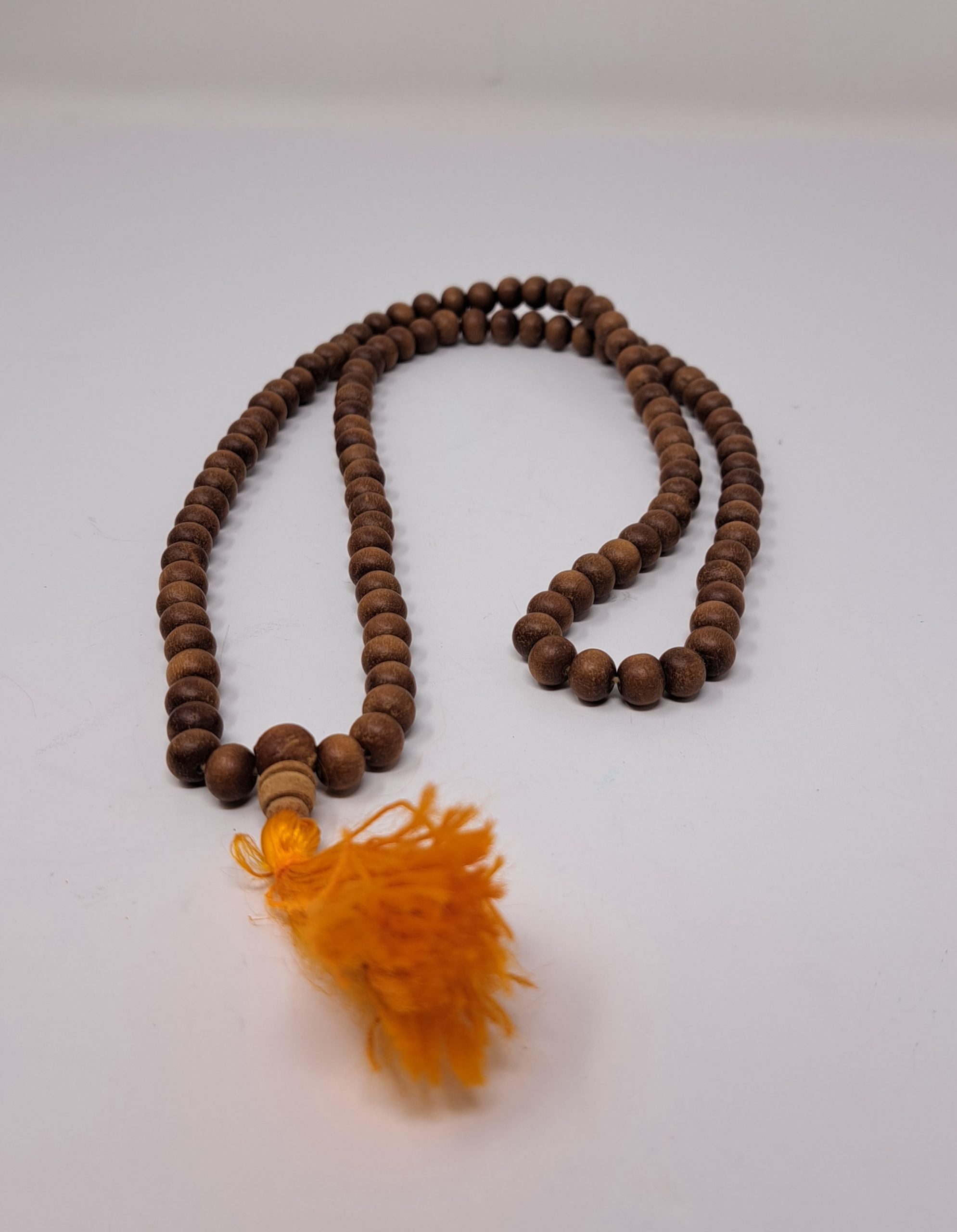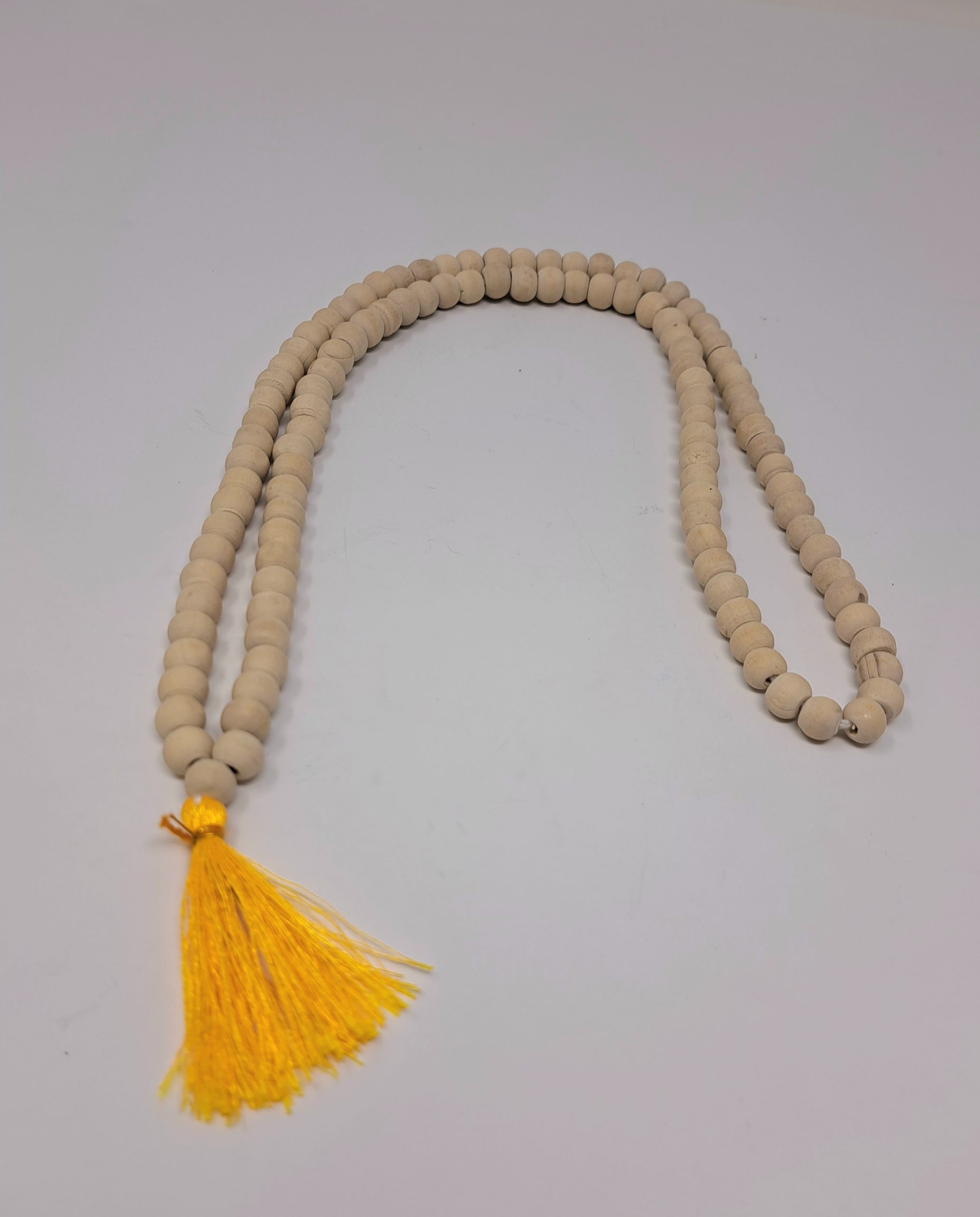 Seed and Wood Bead Mala with Yellow Pendant – 8mm